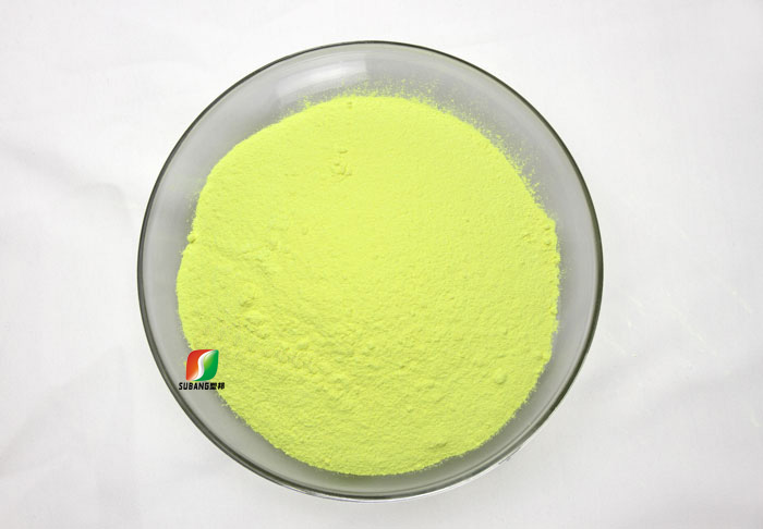 本品使用溫度常溫至280℃以內,可溶于80倍的軟水中,耐酸堿程度為pH=6~11,它可與陰離子表面活性劑或染料、非離子表面活性劑、雙氧水同浴使用。在同等用量的情況下白度比VBL、DMS高,而水溶性能與VBL和DMS相差無幾。與CBS-X相比,水溶性能稍差,但CBS-X可以隨水帶走,涂料干了容易遷移和泛黃,本品解決了在水性涂料、水性漆里熒光增白劑的耐溫性、耐候性、耐黃變、抗遷移性。